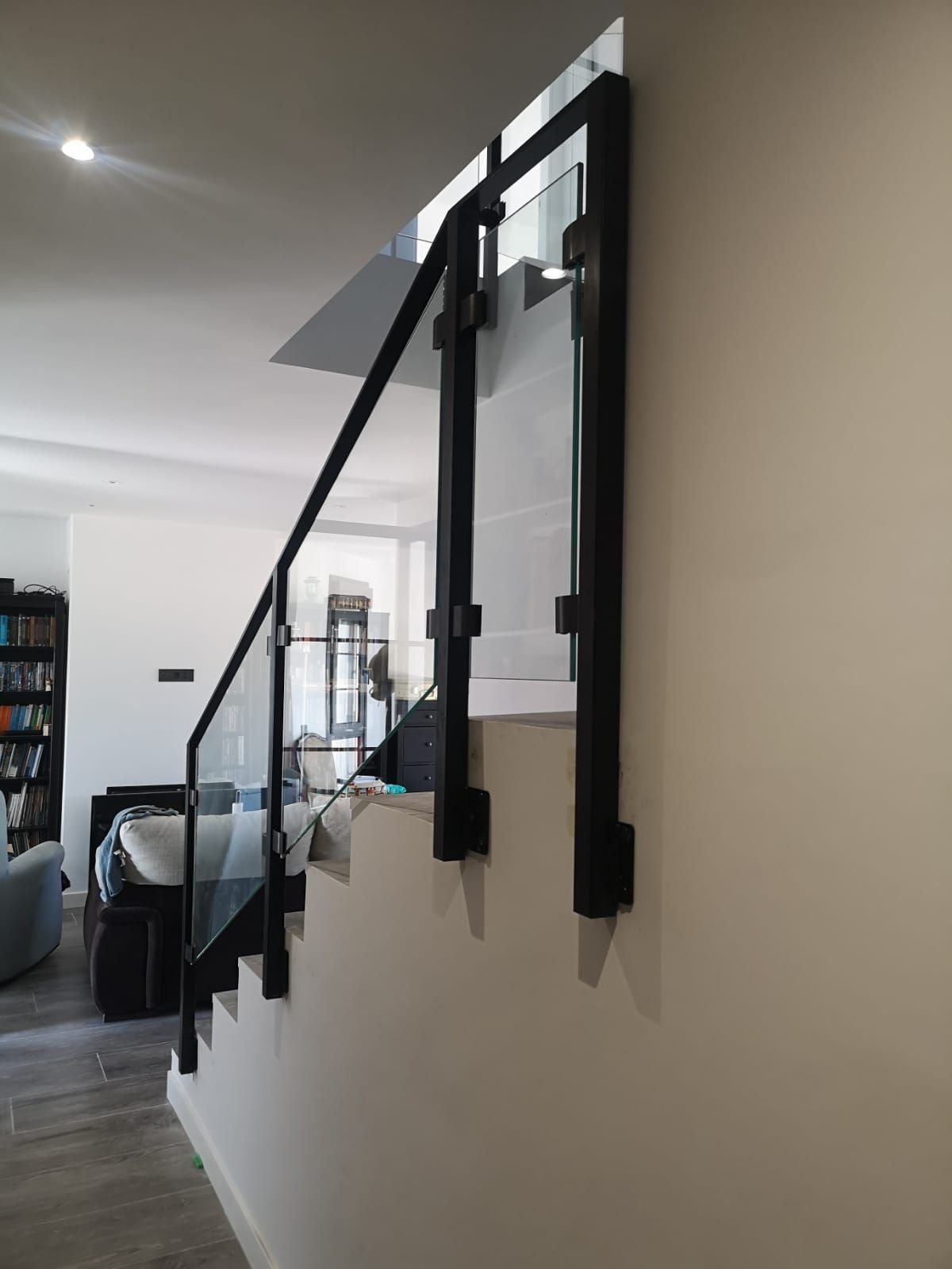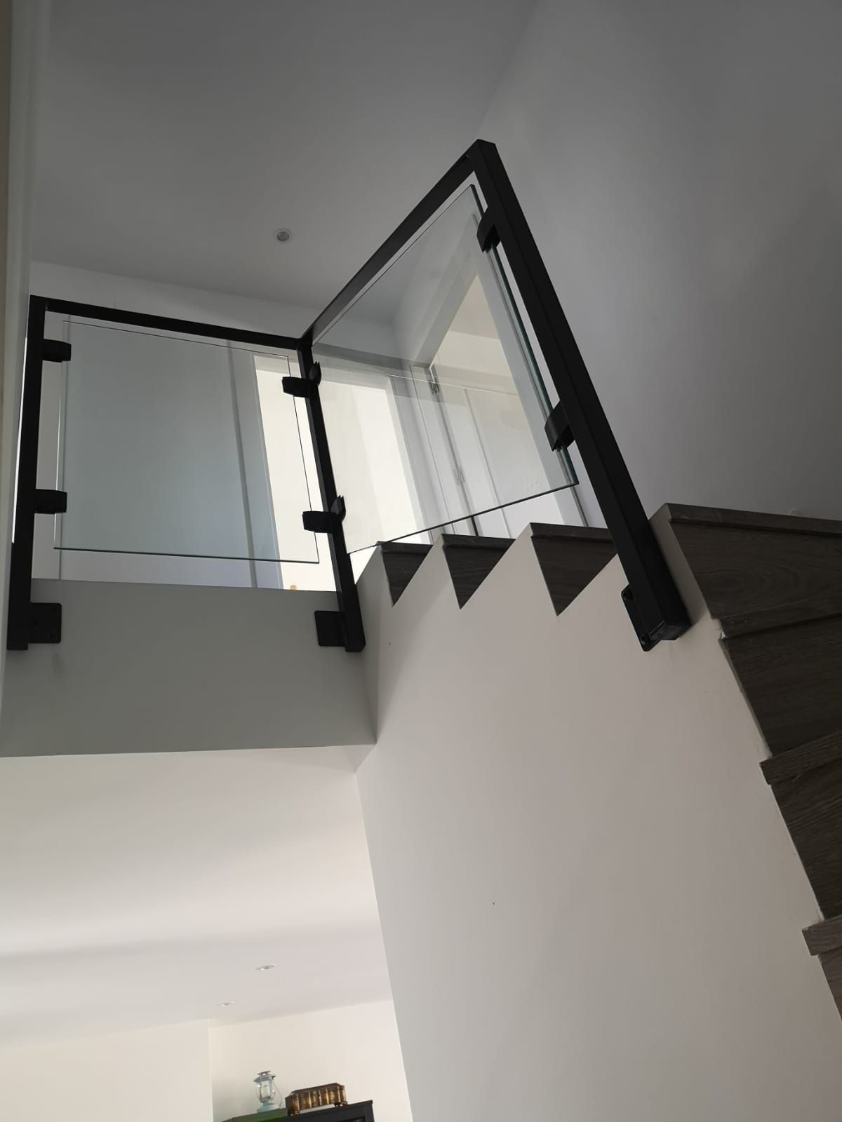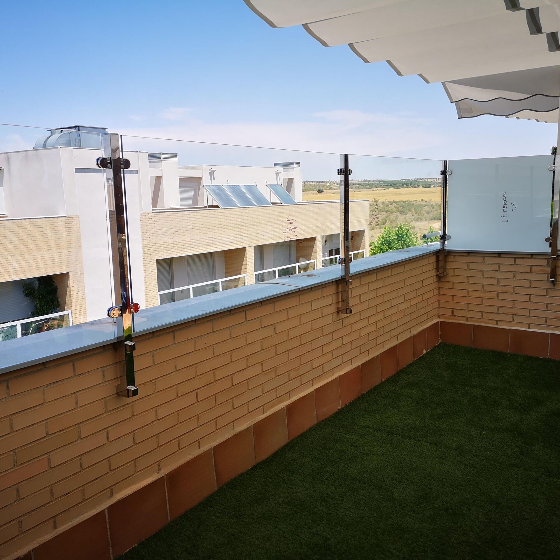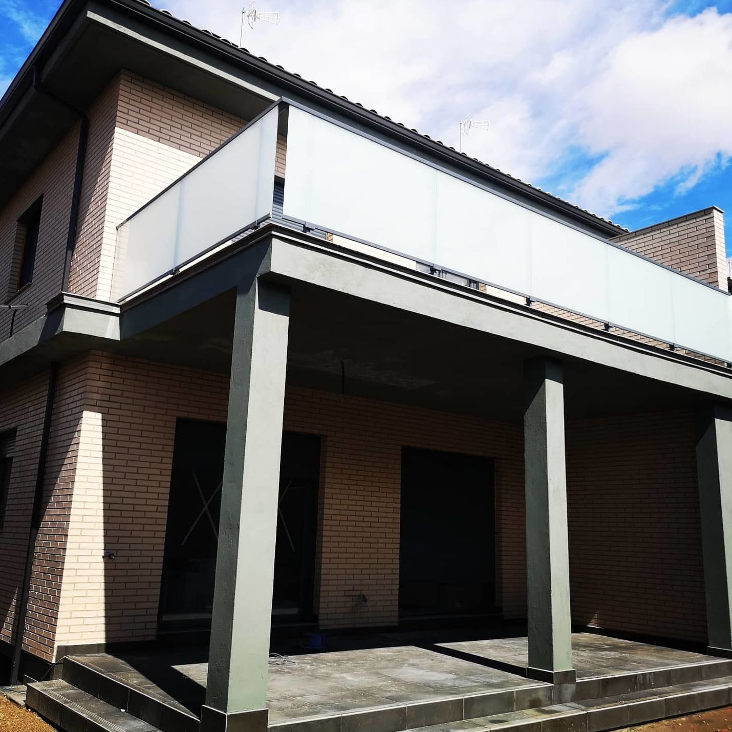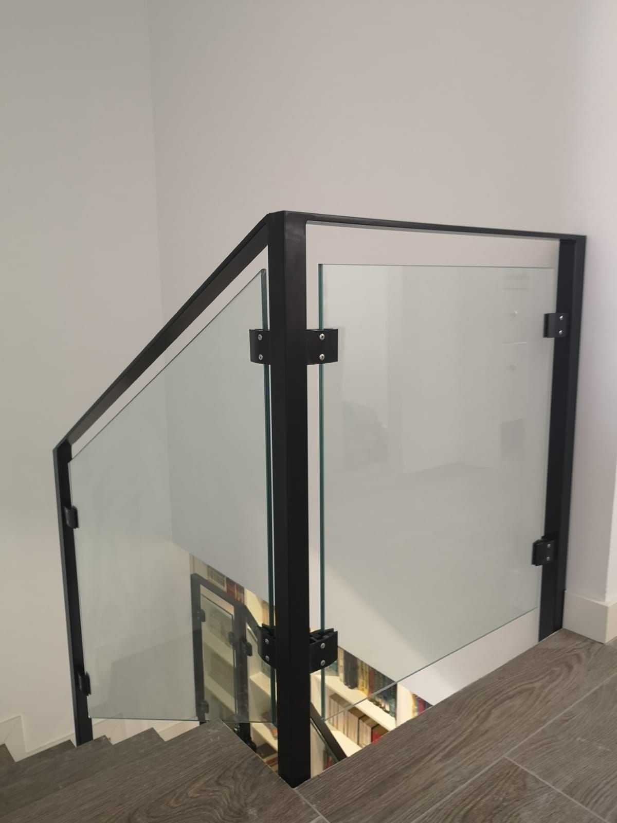 Barandillas de cristal, con postes de tubo 40x40 pinzas y vidrio laminar 5+5