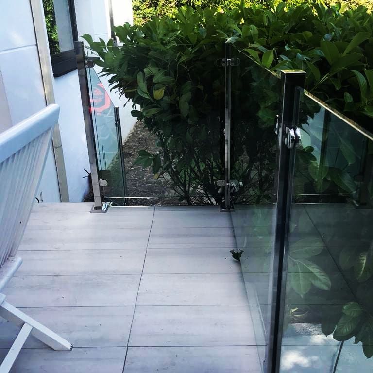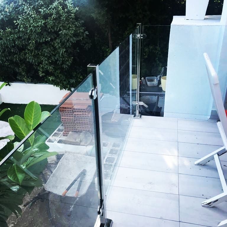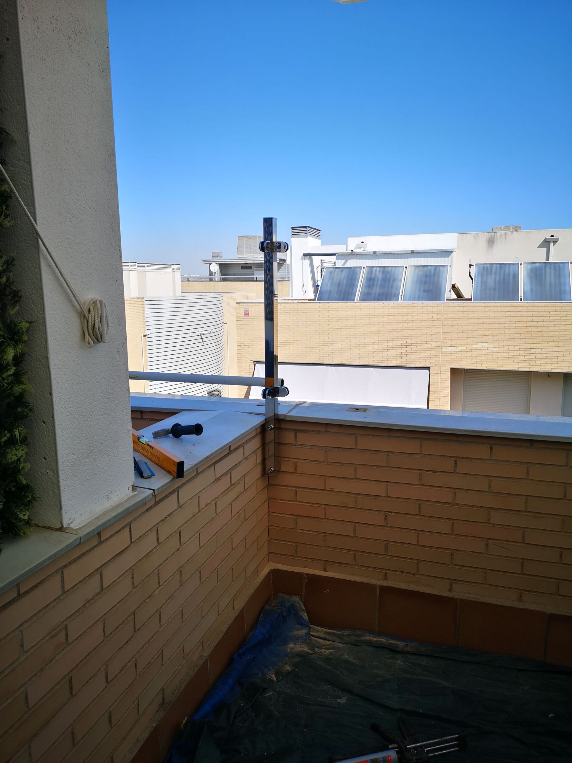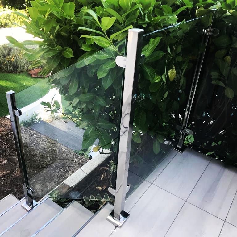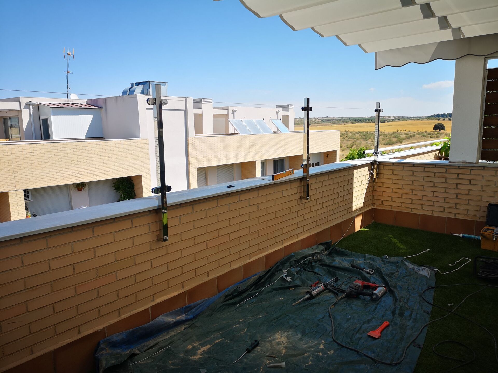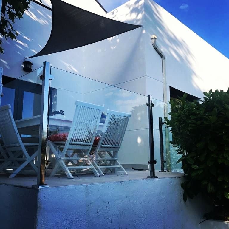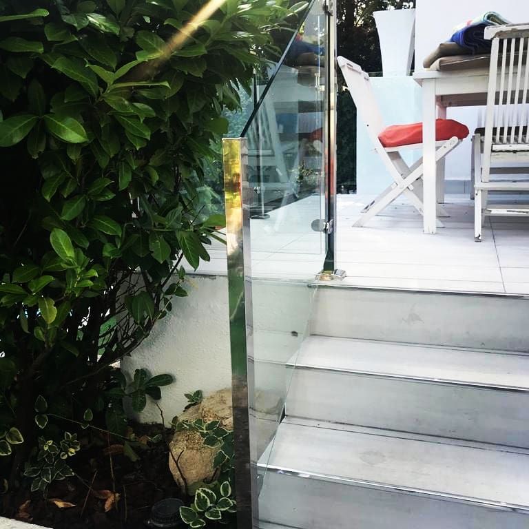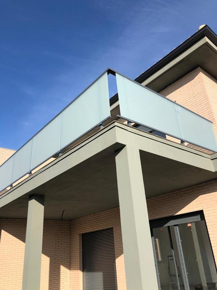 Barandillas de cristal, con postes de tubo 40x40 pinzas y vidrio laminar 5+5