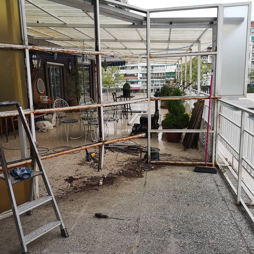 Desmontaje y colocación de cerramiento metálico por cerramiento de aluminio.